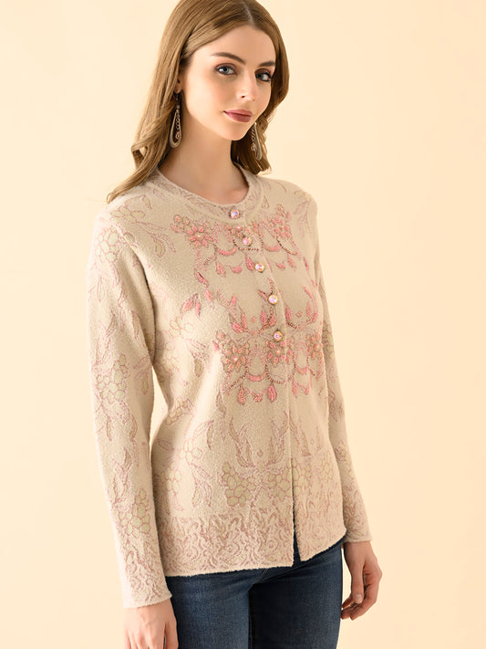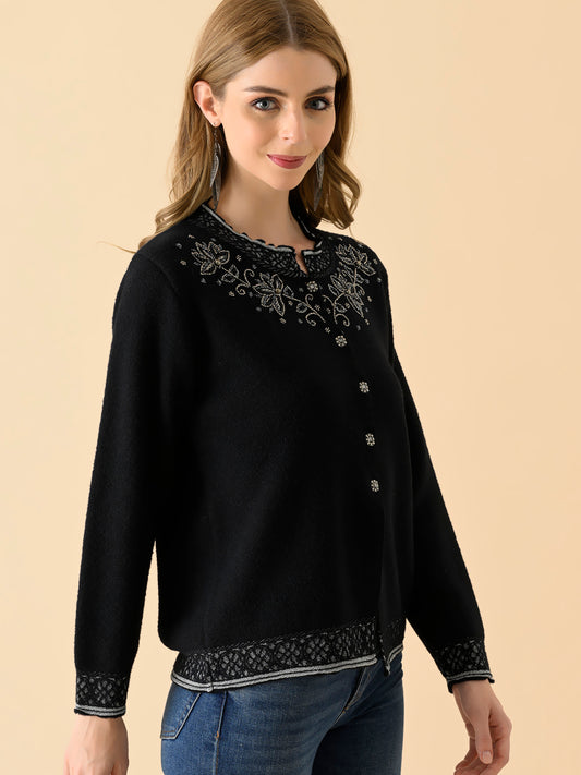 Classic Embroidered Buttoned Cardigan