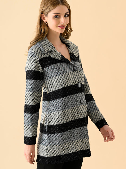 Diagonal Stripe Long Knit Jacket