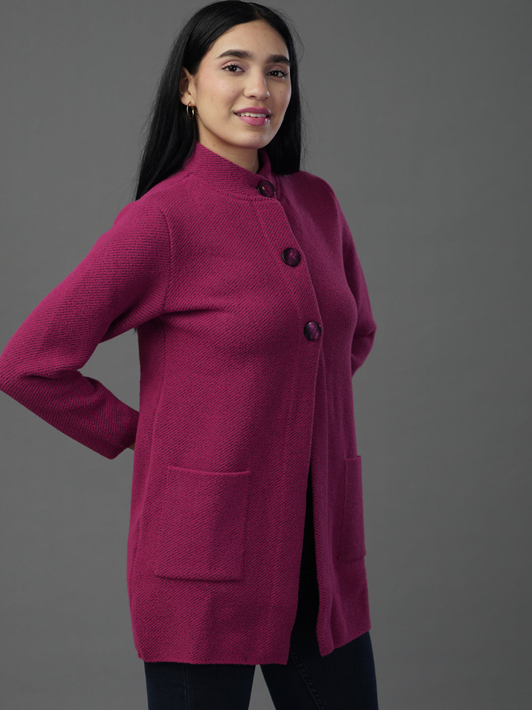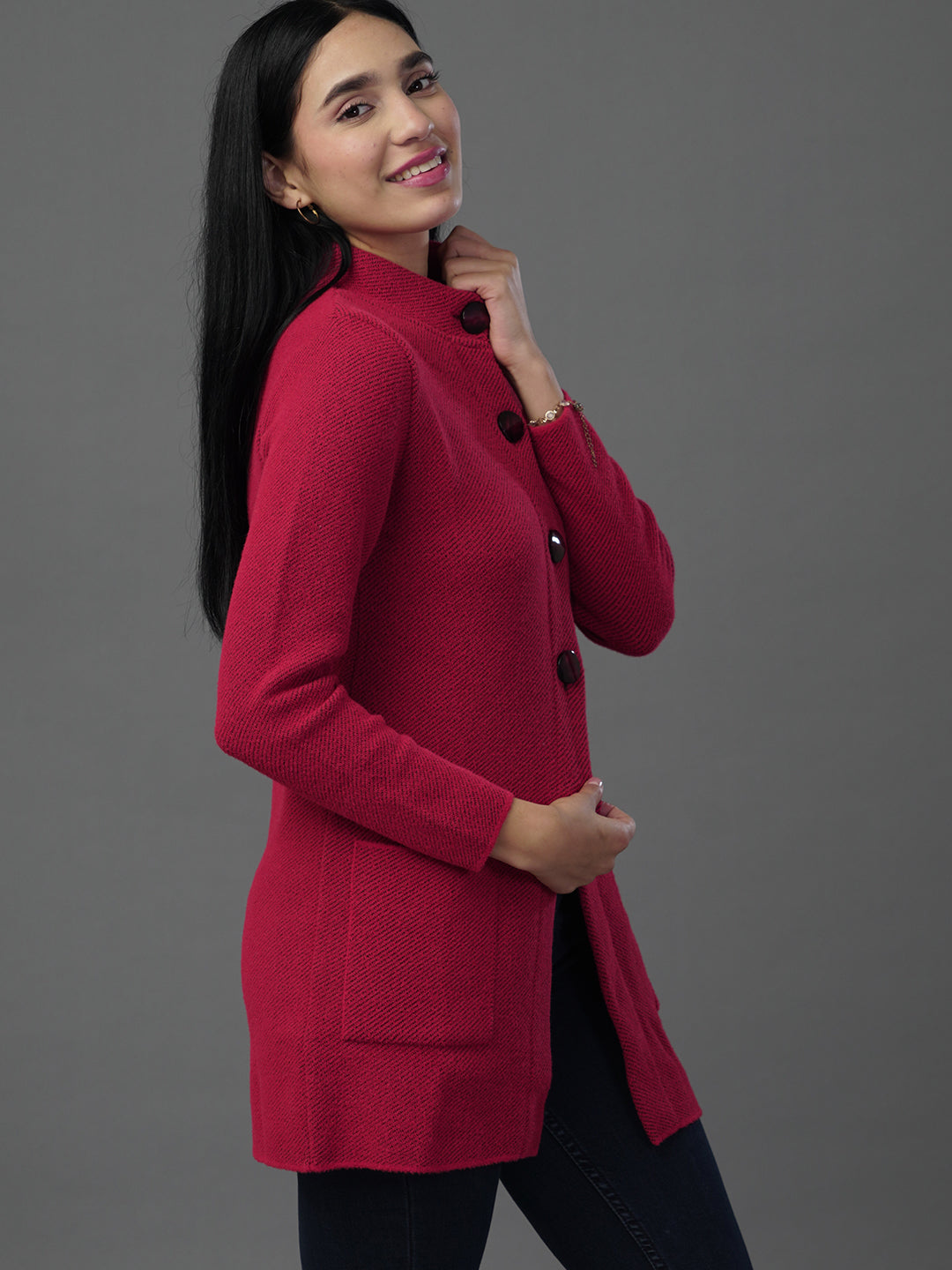 Whether in passionate Red, regal Purple, or earthy Rust, the VWX330 series is a celebration of texture and tone. This premium knitwear features a dense jacquard pattern that provides both visual depth and exceptional warmth for the modern woman.