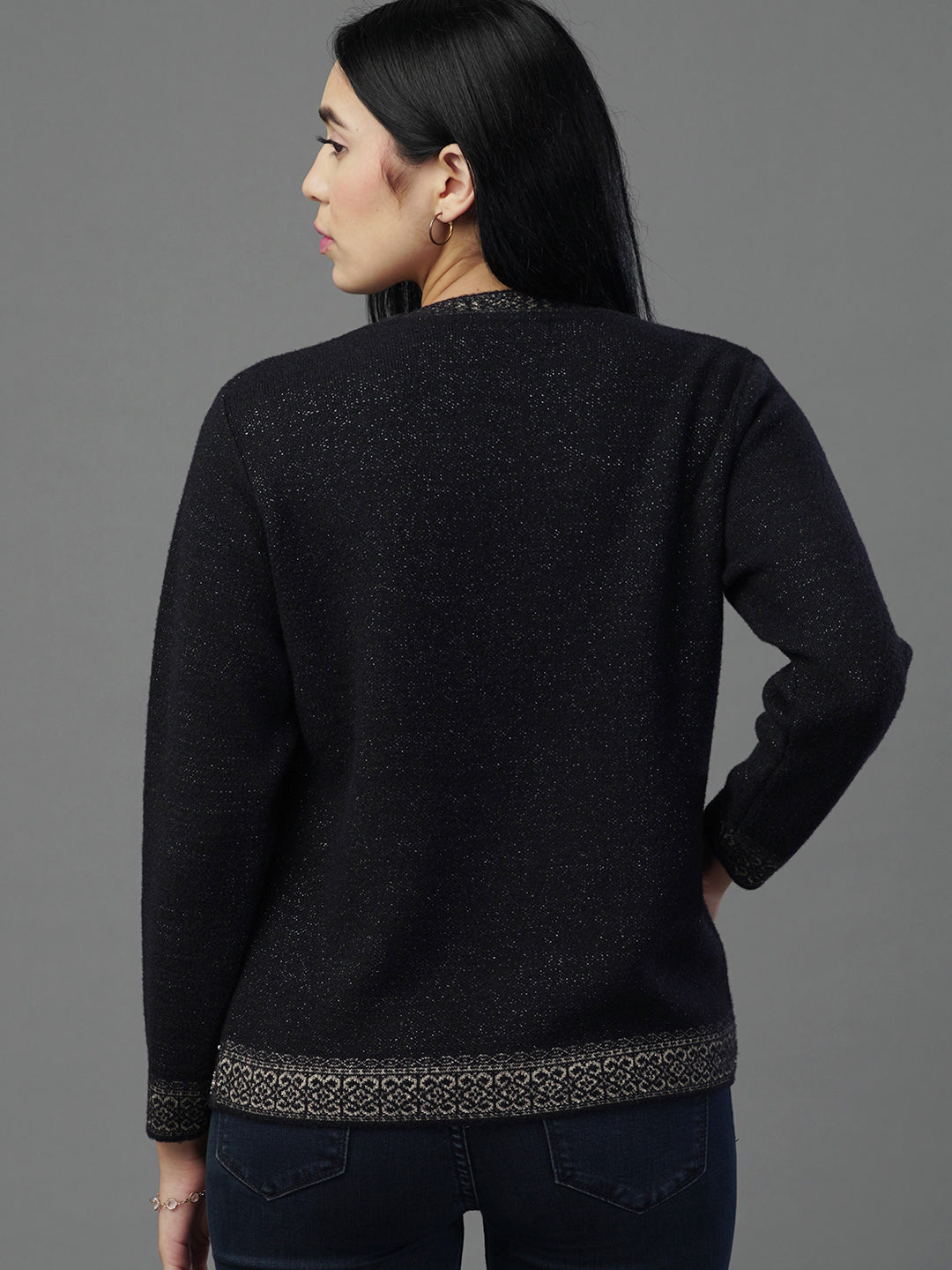 Command attention in this vibrant scarlet cardigan, a piece designed to bring confidence and warmth to your winter days. The detailed jacquard pattern creates a unique visual interest that elevates this classic V-neck silhouette.