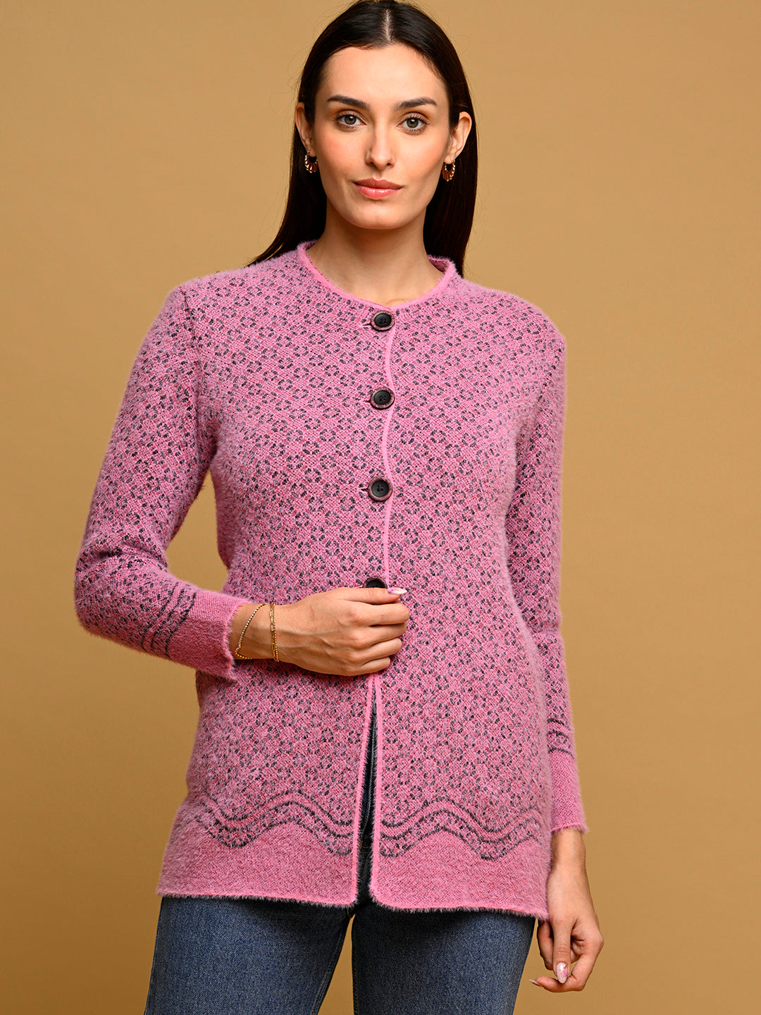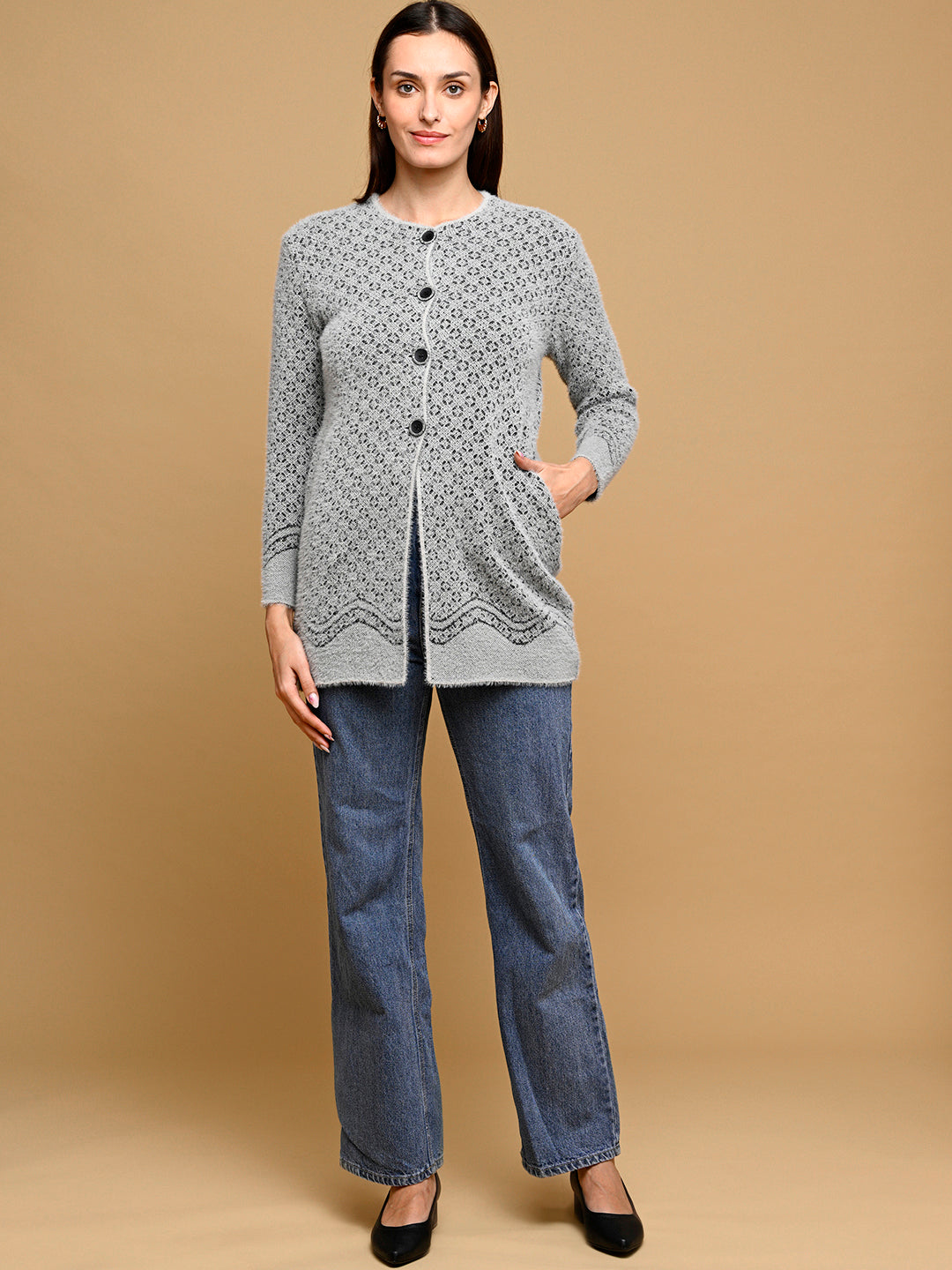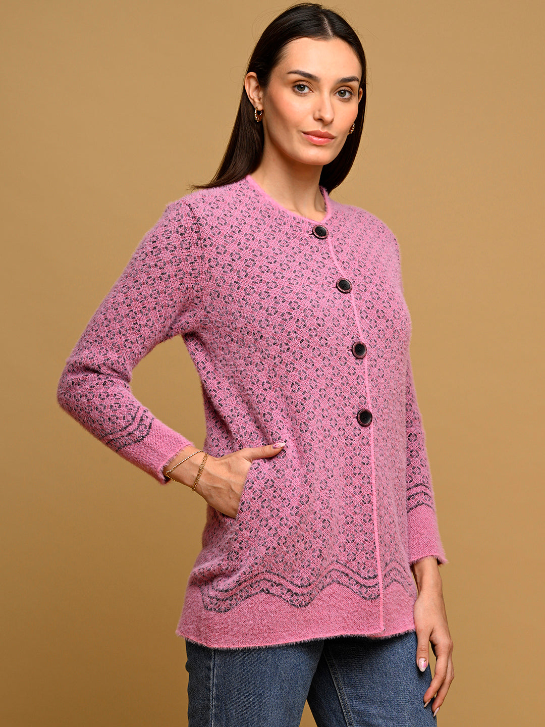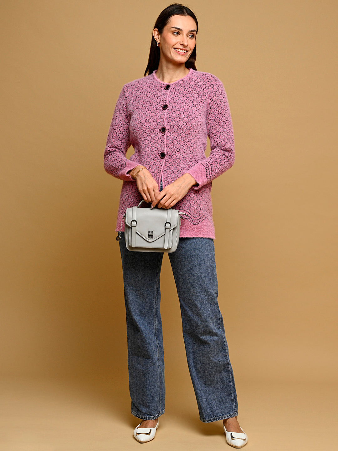 Wrap yourself in warmth and sophistication with the Virsa Elegance Jacquard Long Cardigan. Made from premium nylon wool, this beautifully crafted jacquard cardigan is perfect for winter's chill while adding a touch of elegance to your wardrobe. Featuring a round neck, button-down front, and full sleeves, it offers a regular fit that transitions seamlessly from casual outings to semi-formal events or evening wear. Whether layered over a dress or paired with trousers, this versatile cardigan ensures you stay chic and cozy, no matter the occasion.