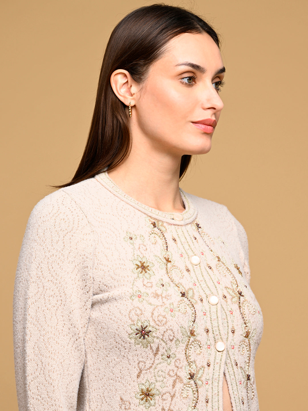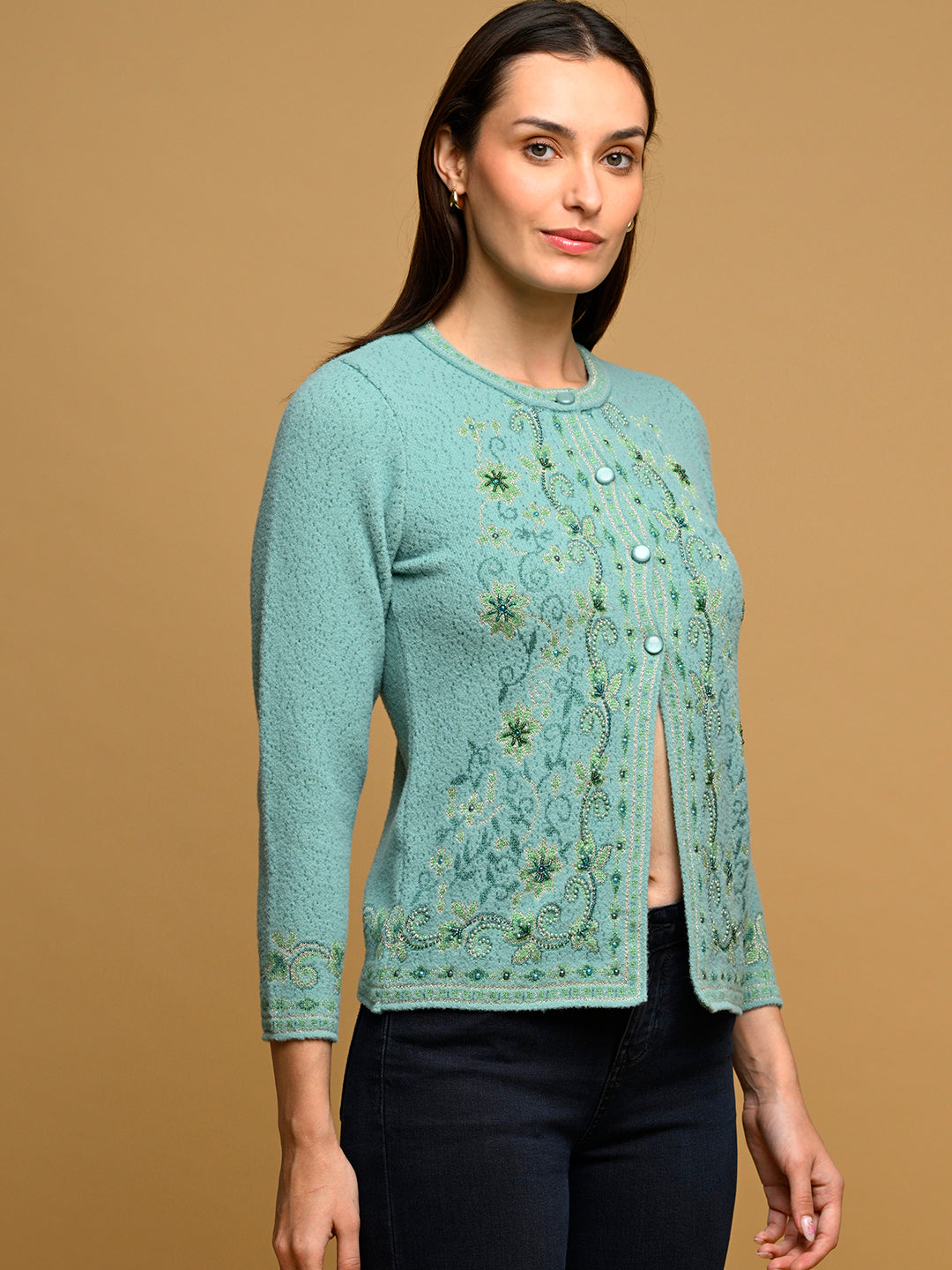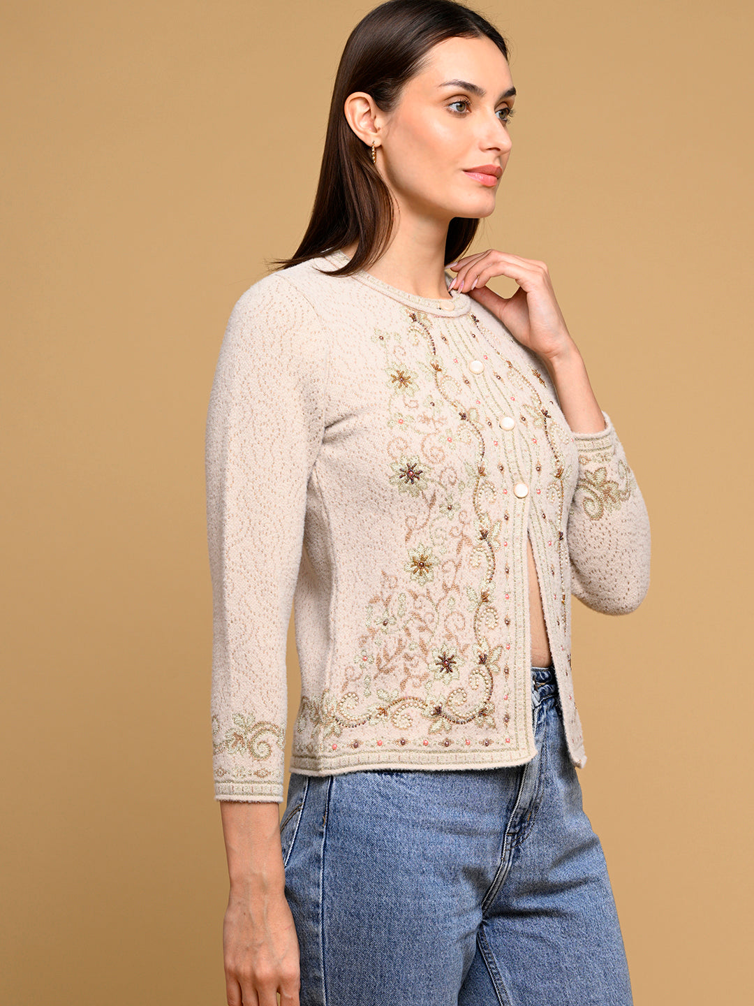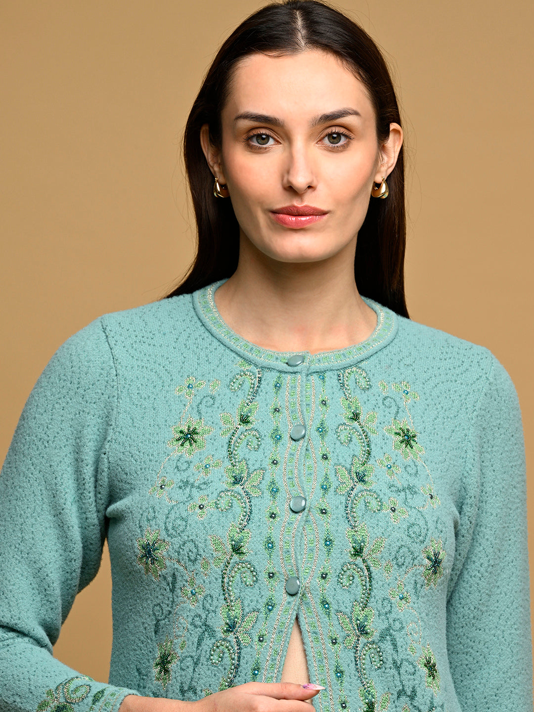 Make a bold statement with the Virsa Jacquard Party Cardigan. Crafted from premium nylon wool, this cardigan is designed to offer both warmth and style during the colder months. Featuring a round neck, button-down front, and full sleeves, it provides a regular fit that’s perfect for layering over your party wear. The jacquard design adds a touch of sophistication, making this cardigan the ideal choice for your next celebration or evening event. Stay chic and cozy while turning heads this winter season.