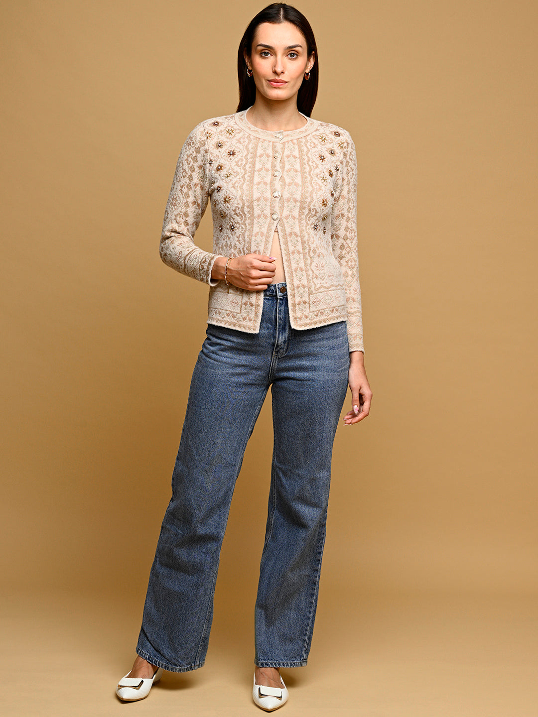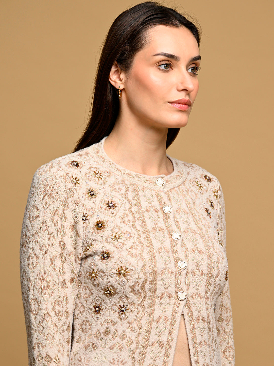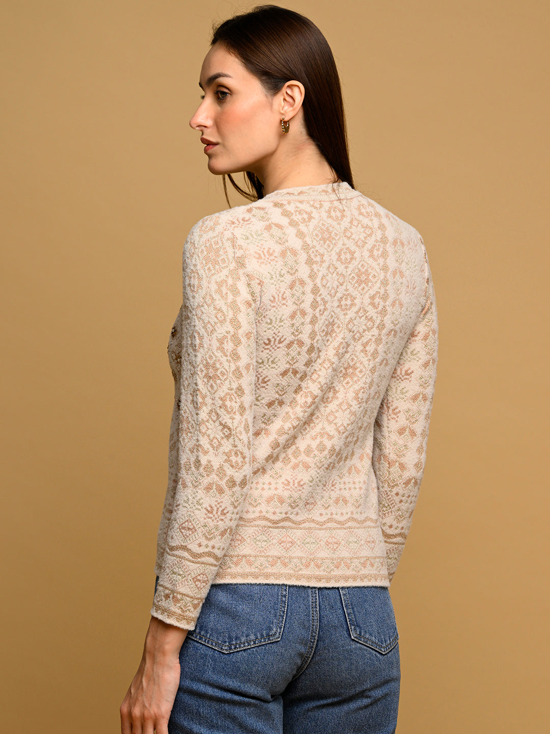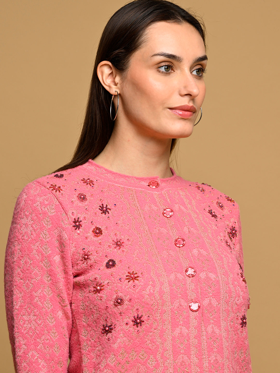 Make a stylish statement this winter with the Virsa Luxe Jacquard Party Cardigan. Made from premium nylon wool, this intricately designed jacquard cardigan offers both warmth and elegance for any party occasion. Featuring a round neck, button-down front, and full sleeves, it provides a regular fit that flatters your silhouette while keeping you cozy. Perfect for layering over your evening wear or pairing with chic outfits, this cardigan adds a touch of luxury and sophistication to your party wardrobe.